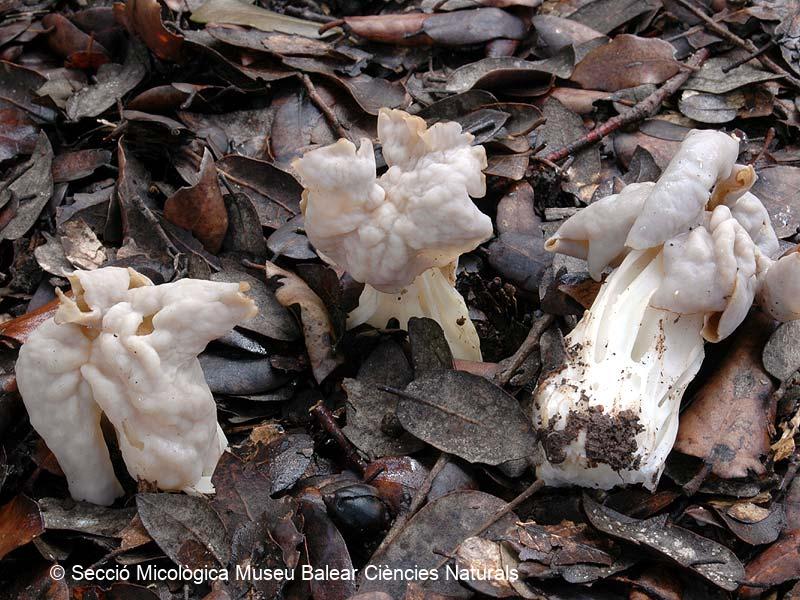 Descripció : L'orella de llebre blanca és un fong sapròfit que es troba bàsicament als alzinars, sobre tot quan comença a fer fred. És una espècie comú a les Illes. La seva principal característica és el capell en forma de sella de muntar.