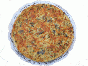 - Lo ponemos al horno, que habremos precalentado a 180º, y lo dejamos una media hora. Una vez veamos que el huevo ya ha cuajado, lo retiraremos del horno, lo sacaremos del molde y ya tendremos la quiche lista para servir.